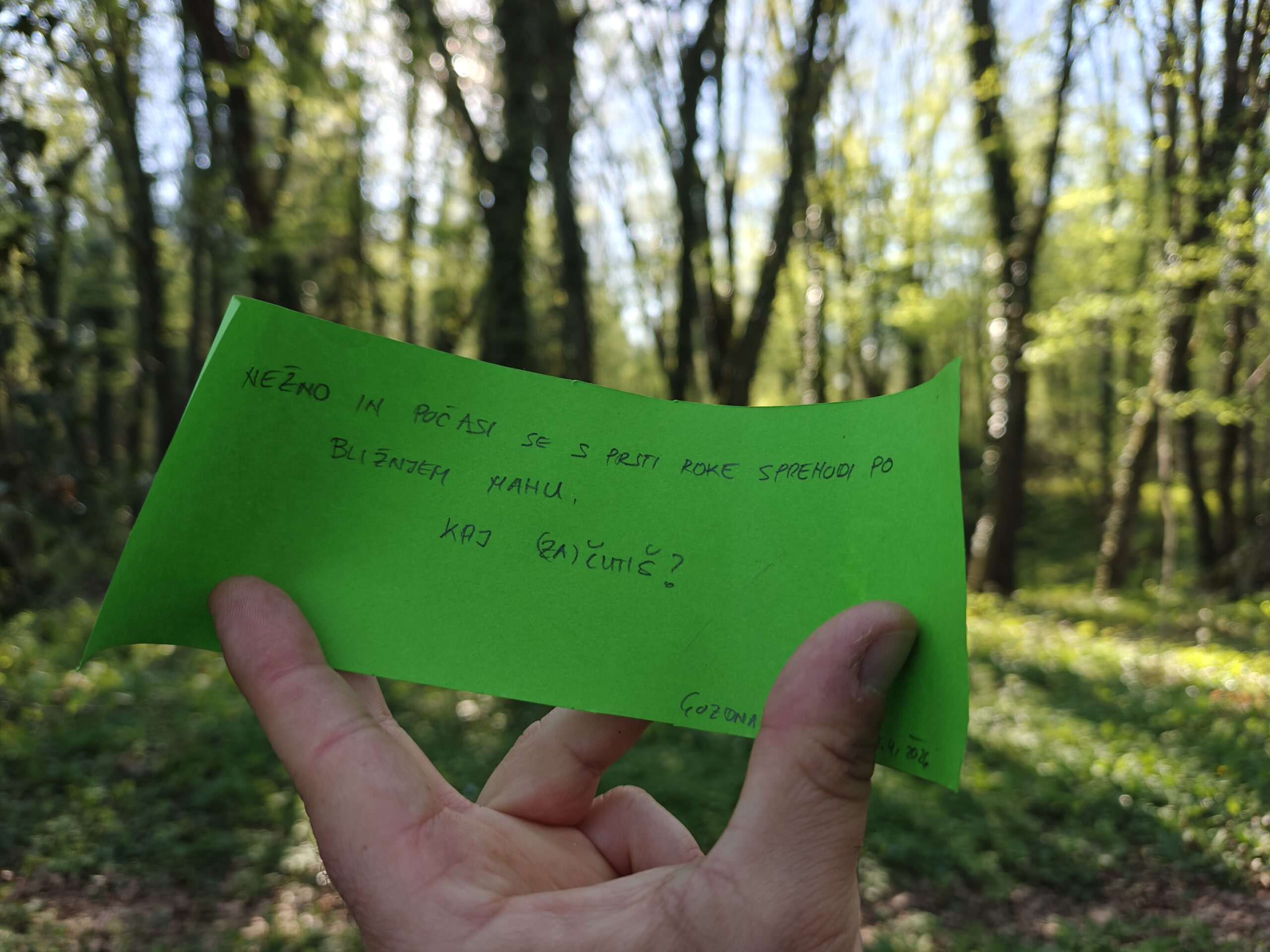 Obiskovalcem sem predal sporočilo, da naj ob naslednjem obisku gozda/narave “Prisluhnejo gozdu, prisluhnejo sebi.”